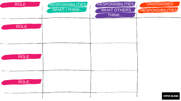 Definir funções e responsabilidades é essencial para mover sua equipe de “storming” para “normal”, ou ajudar as equipes de “desempenho” a voltarem, ou, se manterem no caminho certo. Isso pode ajudá-los a entender melhor o papel de cada um e a aprender quem é responsável pelo o quê. Definir bem as responsabilidades evita confusão e promove uma melhor colaboração. Este método funciona bem com a "Análise de Streakholders" para dar à sua equipe uma imagem clara uns dos outros e das pessoas ao seu redor. Funciona bem online e pessoalmente (exemplo: usando um quadro branco físico ou virtual).