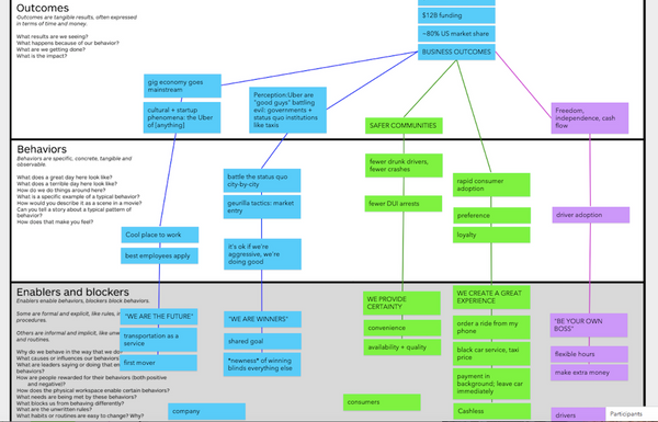 Impressão grande de um Mapa de Cultura (ou desenhar em flipcharts), post-its + marcadores